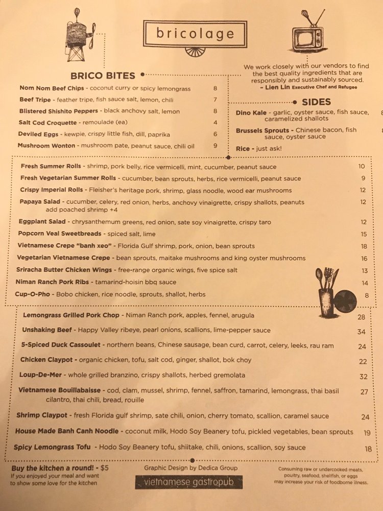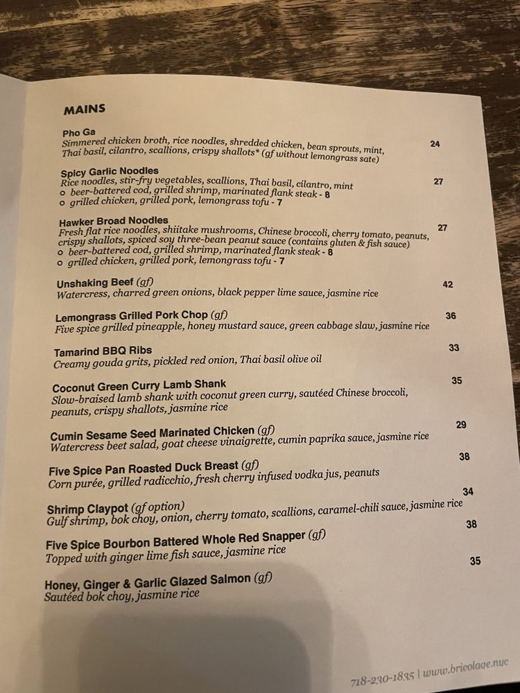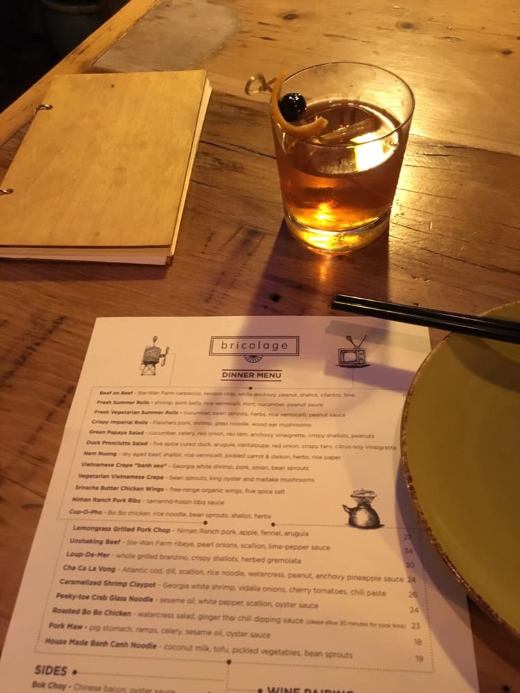 Bricolage is a modern Vietnamese gastropub and cocktail bar located in Brooklyn, offering a diverse menu with vegan and vegetarian options. The restaurant provides a unique dining experience with features like gender-neutral restrooms, pool tables, and happy hour specials. Customers rave about the fast and friendly service, delicious cocktails, and cozy ambience. Dishes like the Special Mushroom Ginger Congee, Pho Ga, and Shaking Beef receive high praise for their flavors and presentation. The outdoor seating area, covered patio, and retro decor add to the overall ambiance of the restaurant. Overall, Bricolage offers a thoughtfully curated menu and a welcoming atmosphere, making it a must-visit spot for Vietnamese cuisine lovers.
