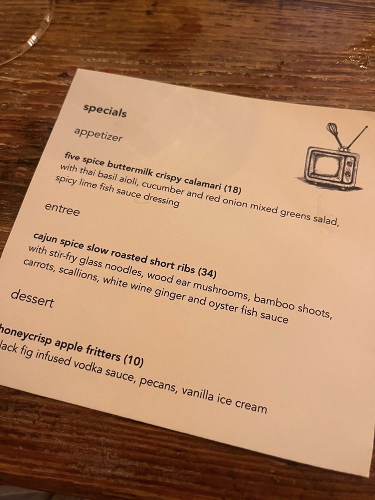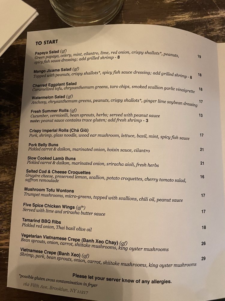 Simmered beef broth, rice noodles, slow cooked brisket, grilled pork ribs, white onion, bean sprouts, Thai basil, mint, star anise powder (gluten free)